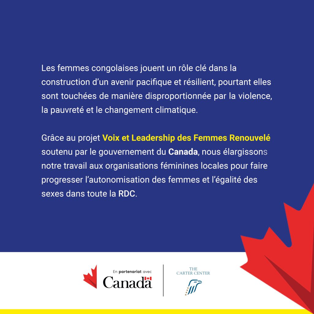 Grâce au projet Voix et Leadership des Femmes Renouvelé soutenu par le gouvernement du Canada, nous élargissons notre travail aux organisations féminines locales pour faire progresser l’autonomisation des femmes et l’égalité des sexes dans toute la RDC.